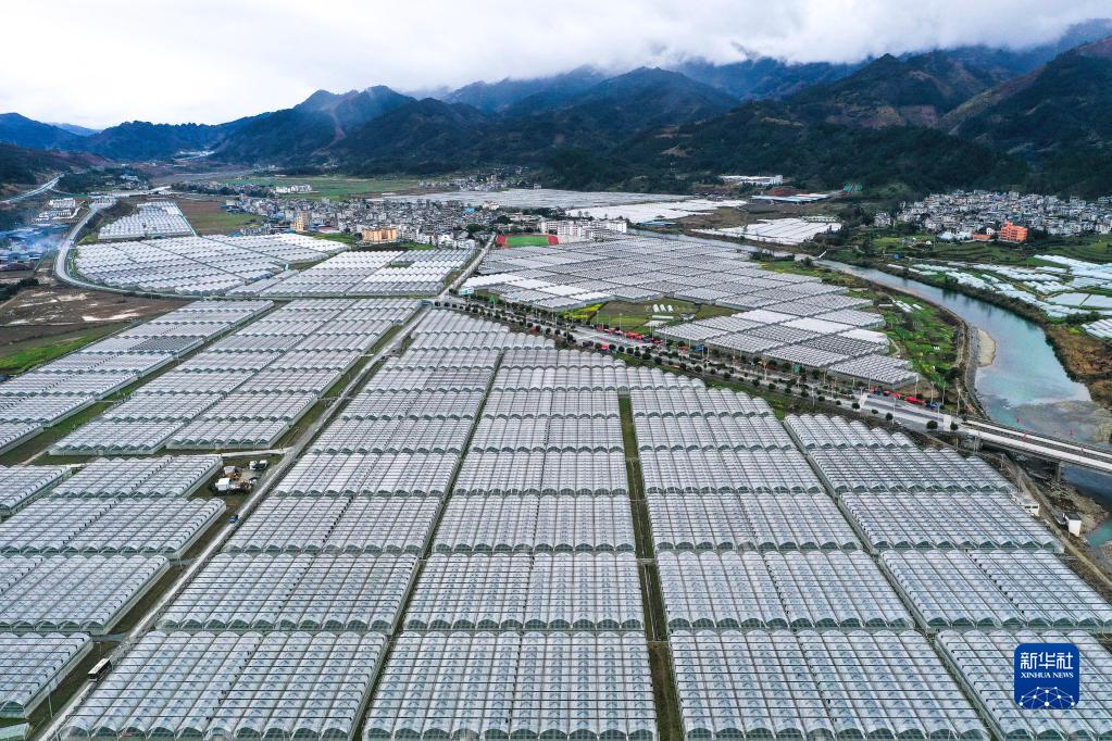 貴州省榕江縣車(chē)江壩區的人工智能調控大棚蔬菜種植區(2月18日攝,無(wú)人機照片)。新華社記者 楊文斌 攝