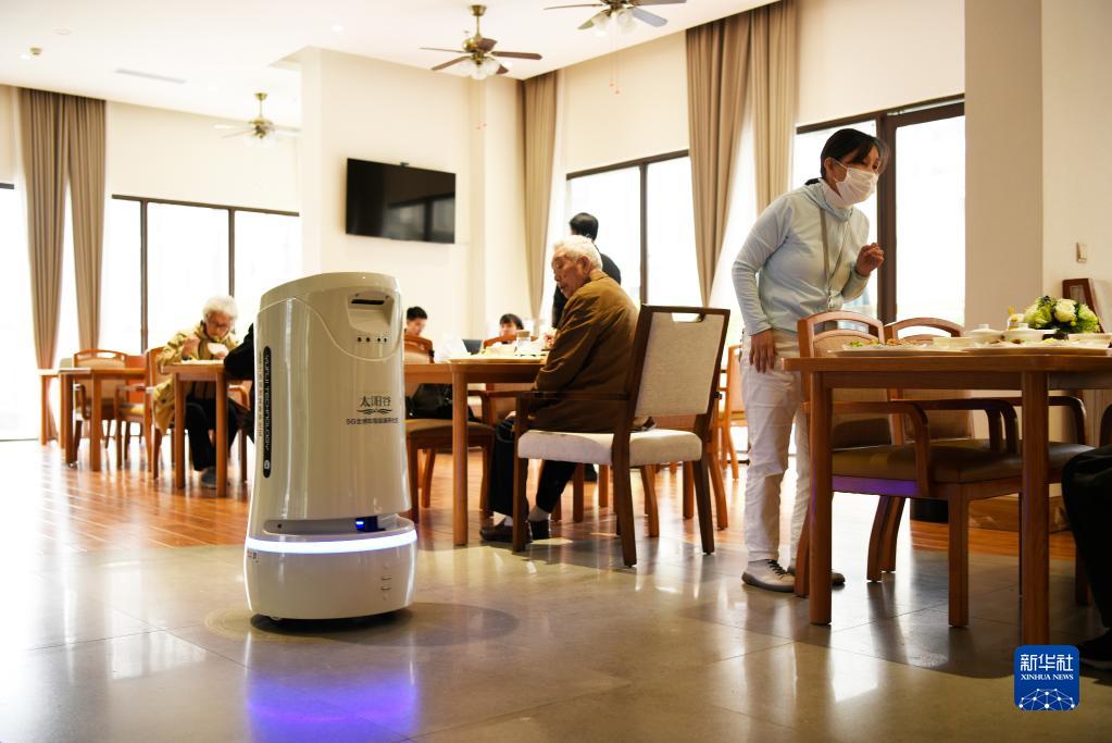 貴州省龍里縣中鐵國際生態(tài)城太陽(yáng)谷5G全感知智能康養社區內的營(yíng)養餐配送機器人在運行中(5月23日攝)。新華社記者 劉續 攝