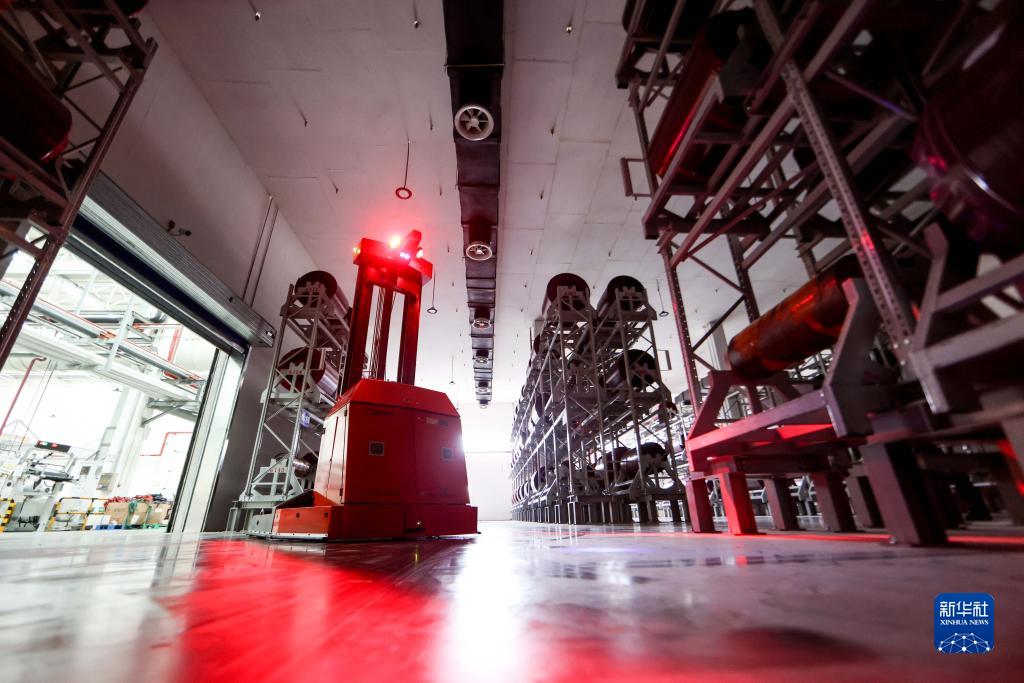 AGV無(wú)人搬運小車(chē)在貴州輪胎股份有限公司“5G全連接工廠(chǎng)”的部件生產(chǎn)區內工作 (5月17日攝)。新華社記者 歐東衢 攝