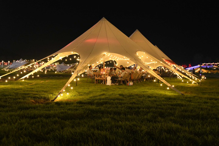 7月24日晚,游客在河北省遵化市團瓢莊鄉山里各莊村廢棄選礦廠(chǎng)上修建的景區露營(yíng)。新華社發(fā)(劉滿(mǎn)倉攝)