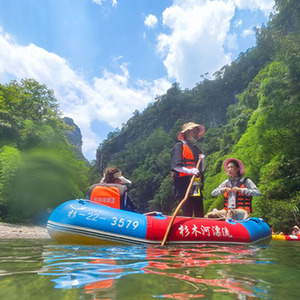 8月4日,游客在貴州省施秉縣杉木河景區漂流。新華社記者 劉續 攝