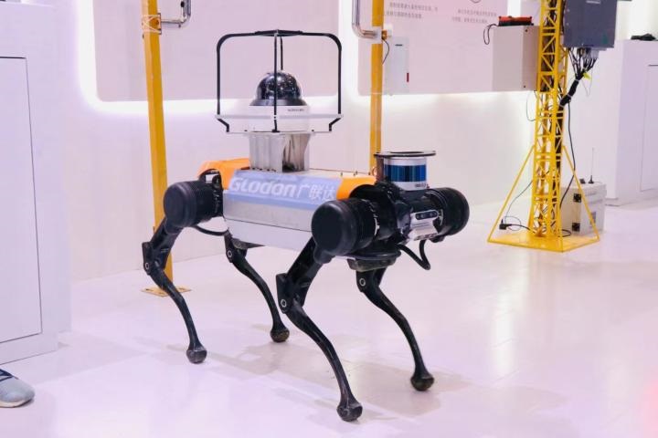 亮相此次服貿會(huì )的我國企業(yè)自主研發(fā)的5G建筑巡檢機器狗。新華社記者 張漫子 攝