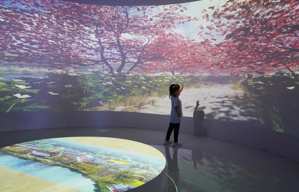 兒童在體驗虛擬現實(shí)與交互展示技術(shù)。新華社記者 金皓原 攝