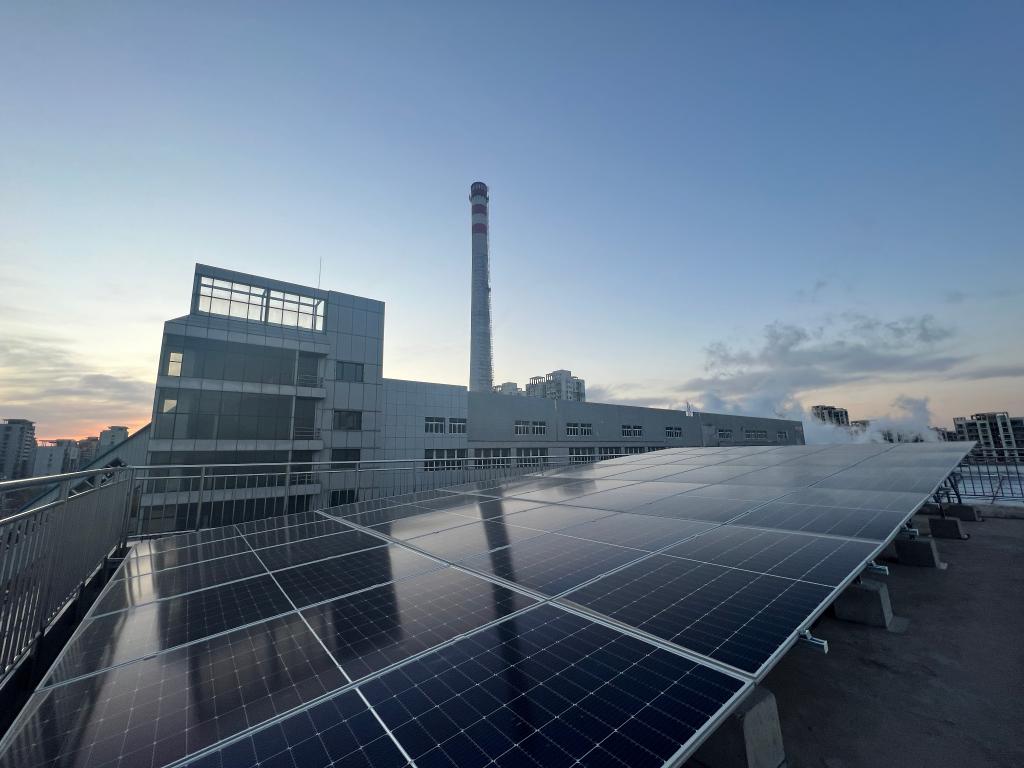 天津市津安熱電有限公司北辰供熱服務(wù)中心屋頂的太陽(yáng)能供暖設備。采訪(fǎng)對象供圖