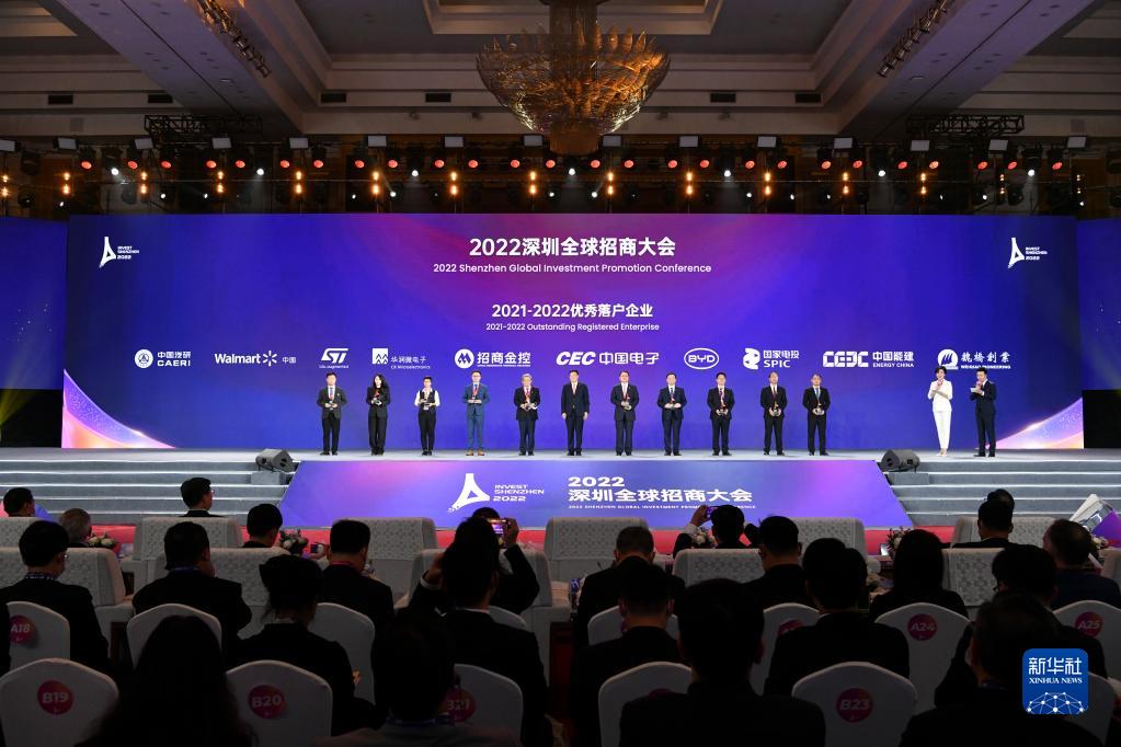 12月9日,2022深圳全球招商大會(huì )現場(chǎng)為優(yōu)秀落戶(hù)企業(yè)頒牌。新華社記者 梁旭 攝