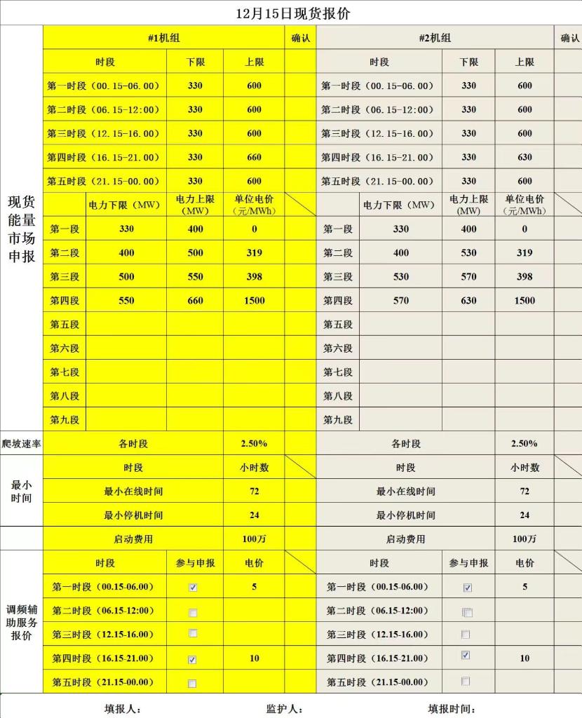 電力交易員做出的報價(jià)表。(受訪(fǎng)者供圖)