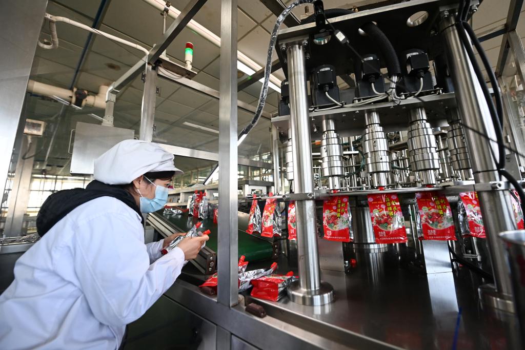在天津市利民調料有限公司辣醬灌裝生產(chǎn)線(xiàn),工作人員在檢查產(chǎn)品包裝(2月20日攝)。新華社記者 趙子碩 攝
