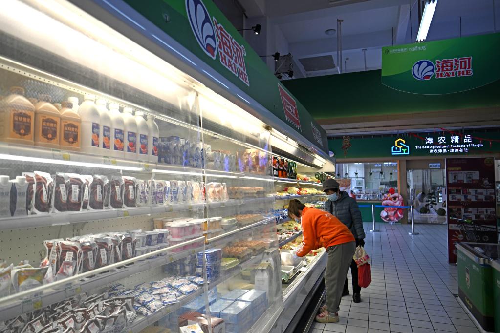 在天津食品集團津農精品體驗店,顧客在選購乳制品(2月23日攝)。新華社記者 趙子碩 攝