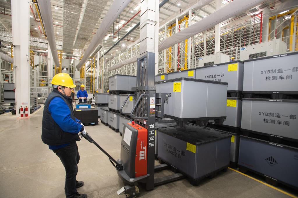 工人在比亞迪襄陽(yáng)產(chǎn)業(yè)園里忙碌。新華社記者肖藝九 攝