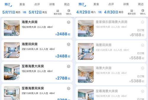“五一”出游熱潮臨近,記者通過(guò)在線(xiàn)旅游平臺查詢(xún)發(fā)現,一些熱門(mén)旅游城市的酒店均出現不同程度的價(jià)格上漲,景區、景點(diǎn)和公交樞紐附近更是漲價(jià)“重災區”。以三亞為例,高星級酒店因房?jì)r(jià)基數高,漲價(jià)后顯得尤為“高不可攀”。