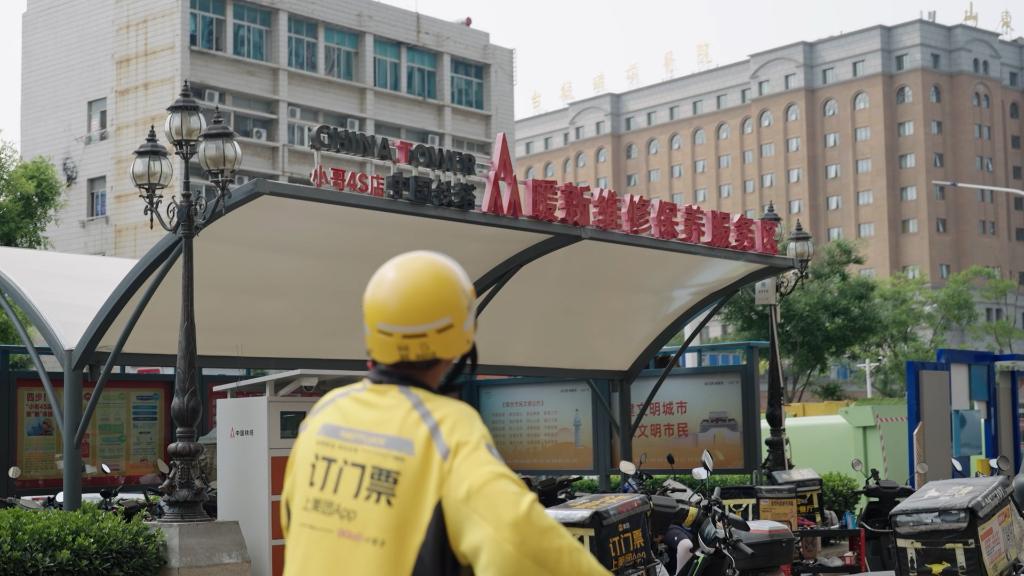 戴航,曾是一名外賣(mài)小哥,現任職新就業(yè)群體服務(wù)專(zhuān)員、“兩新”組織黨建專(zhuān)員。戴航清晨出發(fā),去新就業(yè)群體黨群服務(wù)中心。