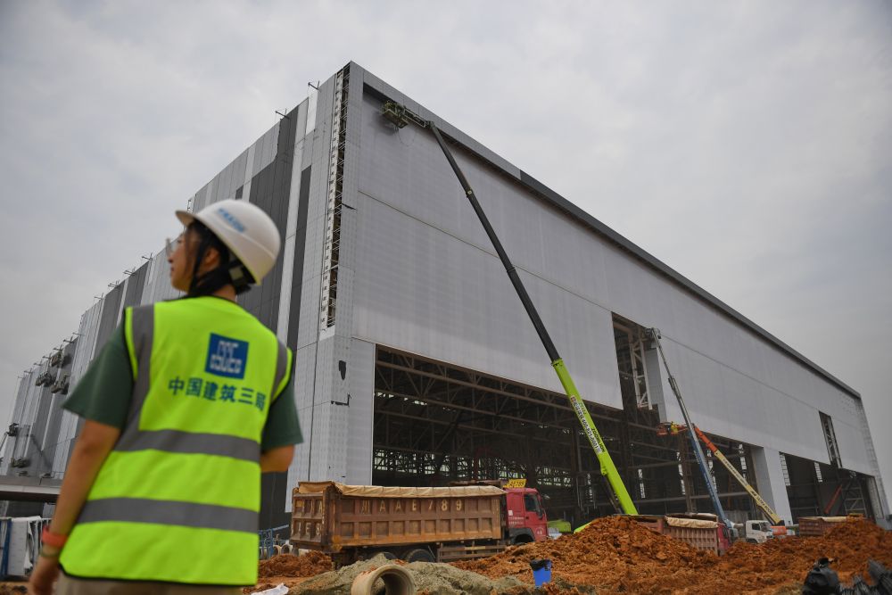 2023年8月15日,在位于四川省成都市雙流區的空中客車(chē)(成都)飛機全生命周期服務(wù)有限公司項目建設現場(chǎng),工人在作業(yè)。新華社發(fā)(李向雨 攝)