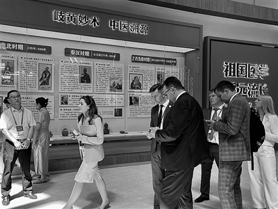 中外嘉賓正在參觀(guān)第四屆中國(甘肅)中醫藥產(chǎn)業(yè)博覽會(huì )展館。記者 程楠 攝