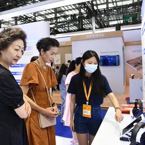 9月15日,在首屆深圳國際智慧養老產(chǎn)業(yè)博覽會(huì )上,觀(guān)眾在展臺了解智慧養老產(chǎn)品。新華社記者梁旭 攝