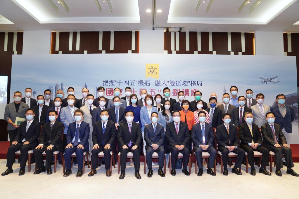8月23日,在香港特區政府總部,嘉賓在國家“十四五”規劃宣講團首場(chǎng)宣講活動(dòng)前合影。新華社記者 王申 攝