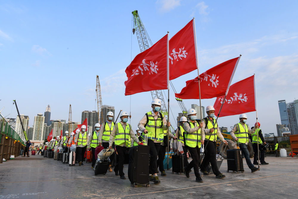 那天,風(fēng)展紅旗,晨曦如畫(huà),“援港抗疫”的使命感寫(xiě)在每一個(gè)人的臉上,閃爍在每個(gè)建設者的眼睛里。他們中的大多數都是“80后”“90后”,身上涌動(dòng)著(zhù)“在國家需要時(shí)挺身而出”的青春熱血。