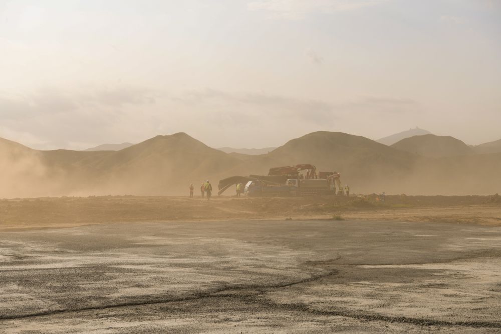 3月6日的建設工地,風(fēng)一起,黃土漫天。