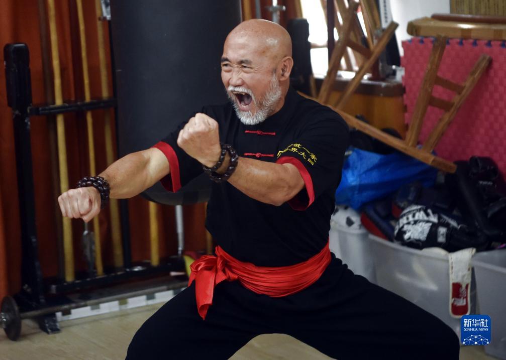 李孝全展示功夫(8月18日攝)。新華社記者 盧炳輝 攝