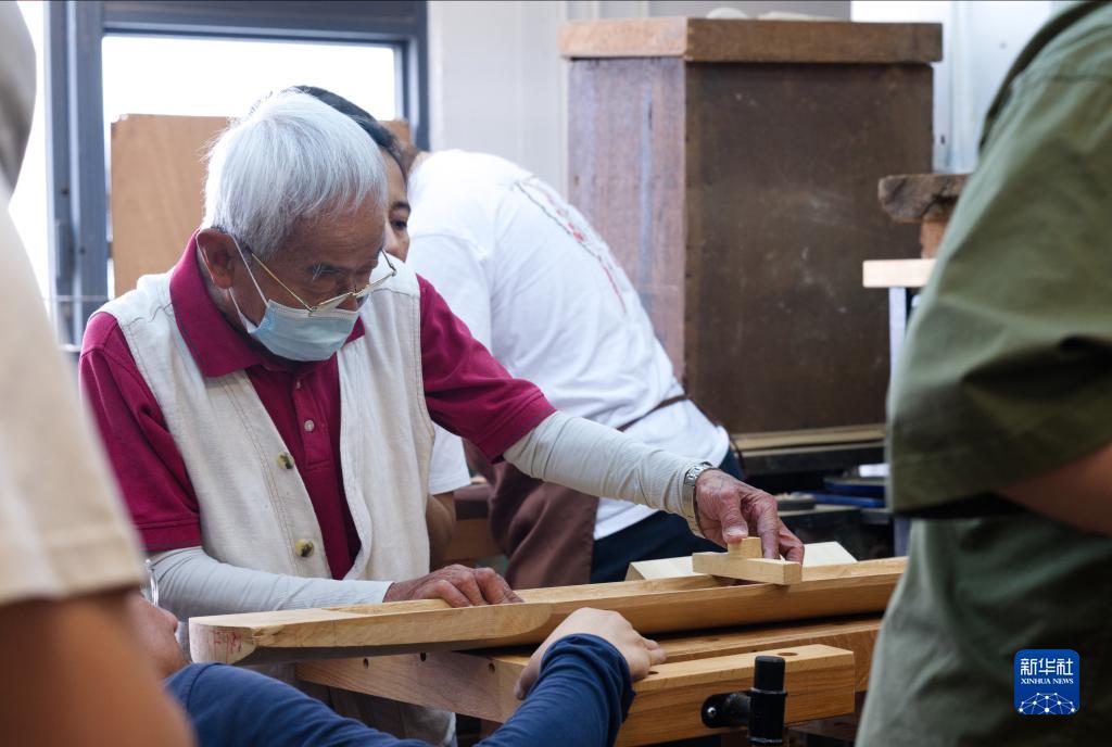 蔡昌壽在指導徒弟制作古琴(4月29日攝)。 新華社發(fā)
