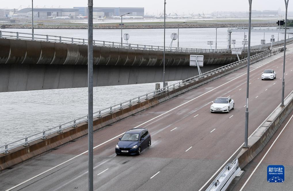 7月1日,車(chē)輛行駛在港珠澳大橋香港段。新華社記者 陳鐸 攝