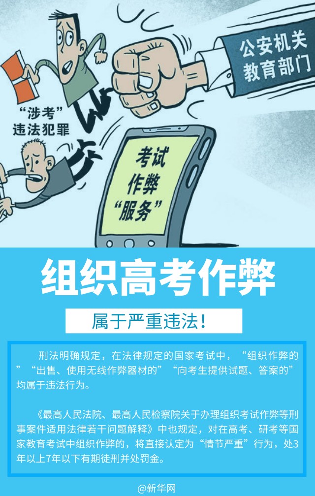 2022年高考即將到來(lái),有些不良機構或不法分子妄圖借高考之機牟取不法利益。近年來(lái),各地公安機關(guān)會(huì )同教育部門(mén),對各類(lèi)涉考違法犯罪活動(dòng)持續保持高壓嚴打態(tài)勢,本期法治課代表提醒廣大考生和家長(cháng)要增強法律意識,誠信考試,切勿心存僥幸。