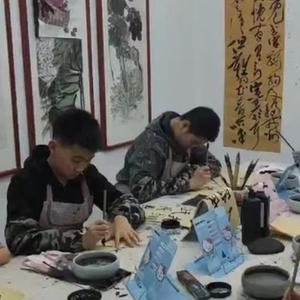 在銀川市一家書(shū)畫(huà)院,孩子們正在學(xué)寫(xiě)毛筆字和學(xué)畫(huà)國畫(huà)。(受訪(fǎng)者供圖)