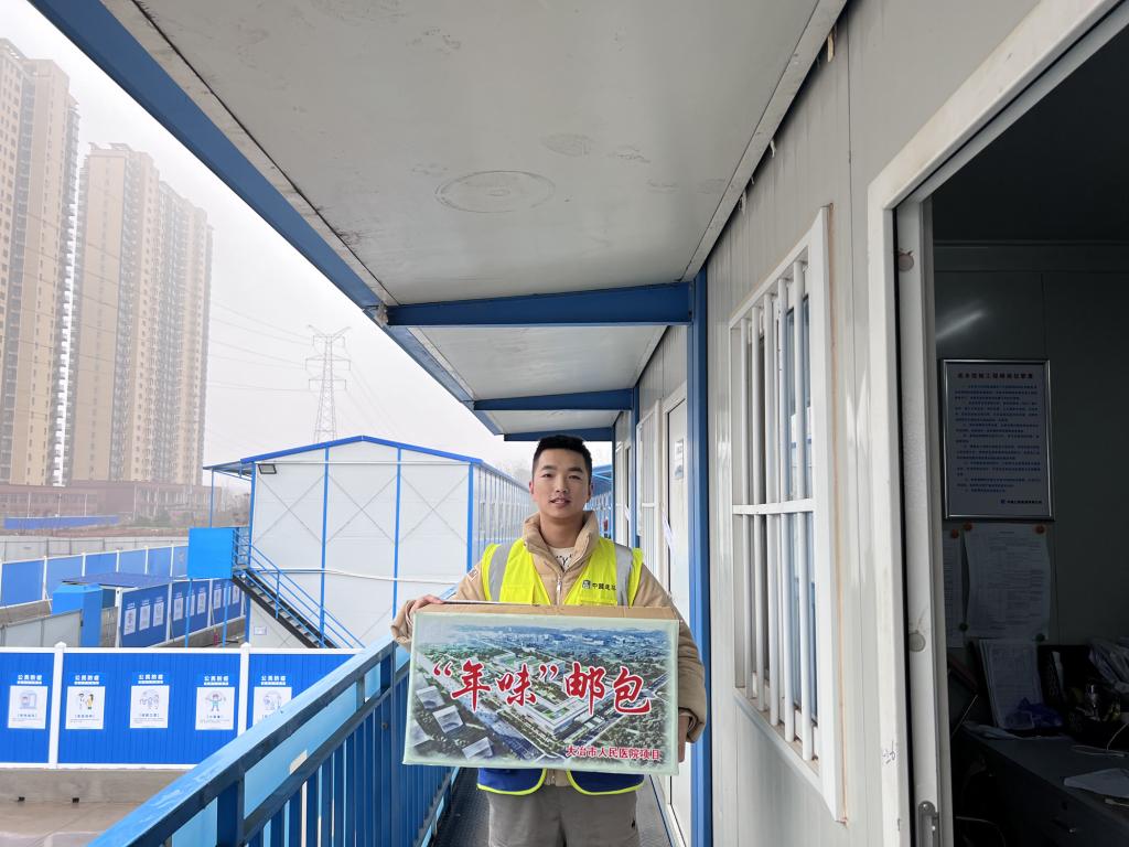 來(lái)自河南商丘的馬付程,老家有90多歲的母親,有惹人喜愛(ài)的小孫女,但平日在外忙工作,他往往只有過(guò)年的時(shí)候才能回家陪陪親人?!敖衲暧植荒芑厝F圓,但工地上貼心地為我們和家人準備了‘年味’郵包,讓我們在湖北也能?chē)L到家鄉的味道,很溫暖!”