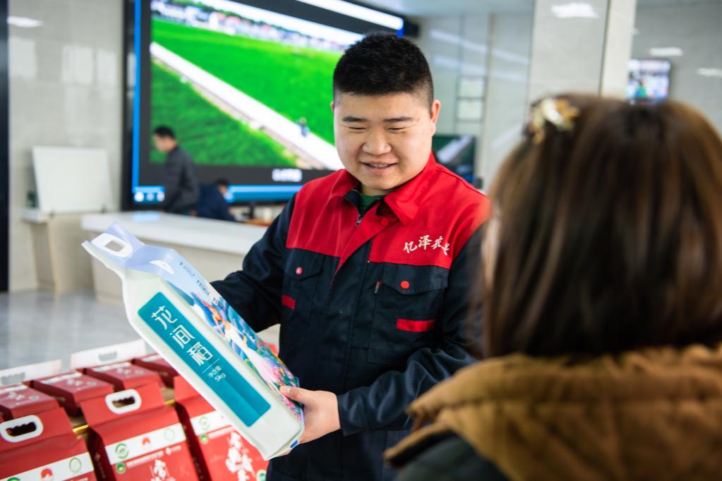 2月22日,陳帥宇在他創(chuàng )辦的湖南億澤生態(tài)農業(yè)科技有限公司向來(lái)訪(fǎng)人員介紹產(chǎn)品。新華社記者周勉 攝