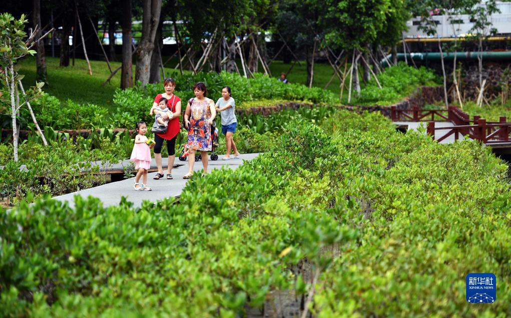 “以前這里是垃圾場(chǎng)和臭水溝,如今被政府改造成濕地公園,景色美,環(huán)境好,是一個(gè)健身休閑的好去處,也非常適合帶孩子來(lái)玩?!焙?谑忻顸S子露說(shuō)。