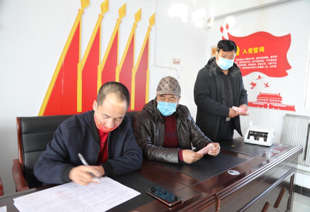 在黑龍江省齊齊哈爾市拜泉縣龍泉鎮群富村村委會(huì )會(huì )議室,村民們正在簽訂土地托管合同。(受訪(fǎng)者供圖)