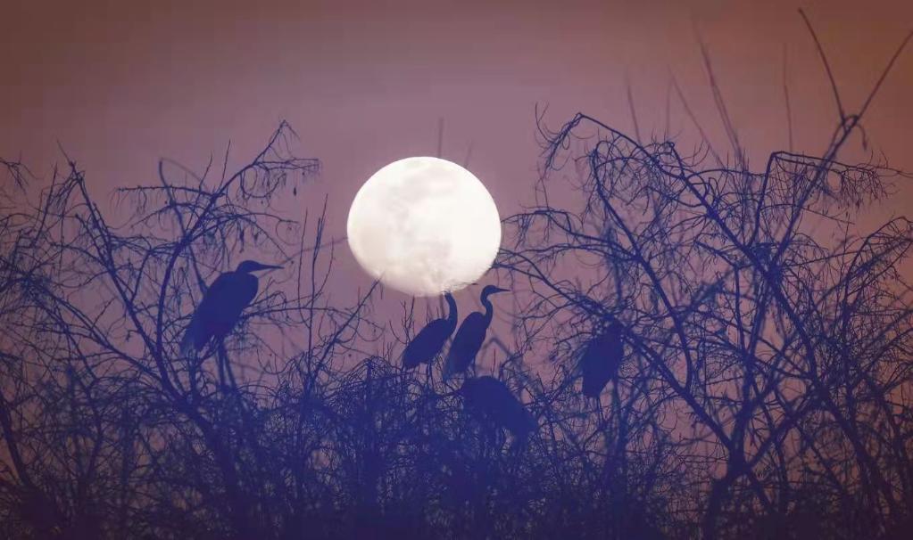 白鷺依月而棲。(受訪(fǎng)者供圖)