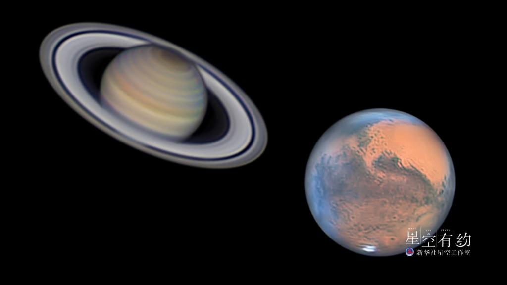 “兩顆行星如此靠近是難得一見(jiàn)的,非常值得觀(guān)測。如果觀(guān)測時(shí)機得當、天氣晴好,有興趣的公眾可憑肉眼看到它們。當然,欣賞時(shí)最好使用雙筒望遠鏡,不僅會(huì )有‘同框’效果,而且雙星的顏色對比也十分有趣,火星呈紅色,土星呈黃白色?!毙蘖Ⅸi說(shuō)。
