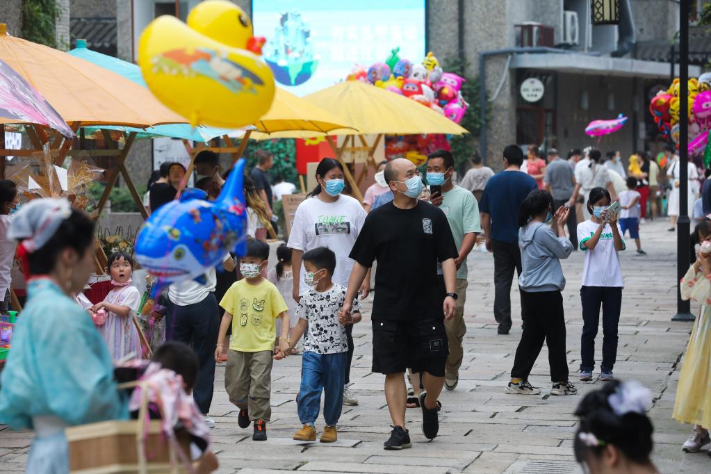 6月3日,游客在杭州市余杭區瓶窯老街游覽。(新華社記者 徐昱 攝)