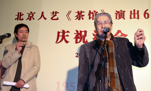 1999年秋,林兆華導演,梁冠華、濮存昕、楊立新、馮遠征、宋丹丹等主演的新版《茶館》在首都劇場(chǎng)公演,卻因其表現性舞臺布景、自然化表演風(fēng)格等因素引發(fā)爭議;到2005年夏,北京人藝以上述演員陣容恢復了焦菊隱版《茶館》,林兆華任“復排藝術(shù)指導”。
