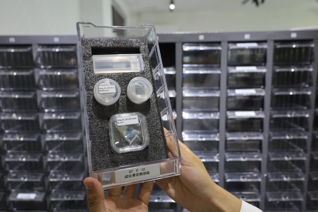 工作人員正在展示一份明成化時(shí)期的古陶瓷基因標本。王凱豐攝