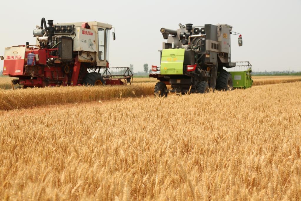 圖為在南皮縣,收割機正在收割小麥。(受訪(fǎng)者供圖)