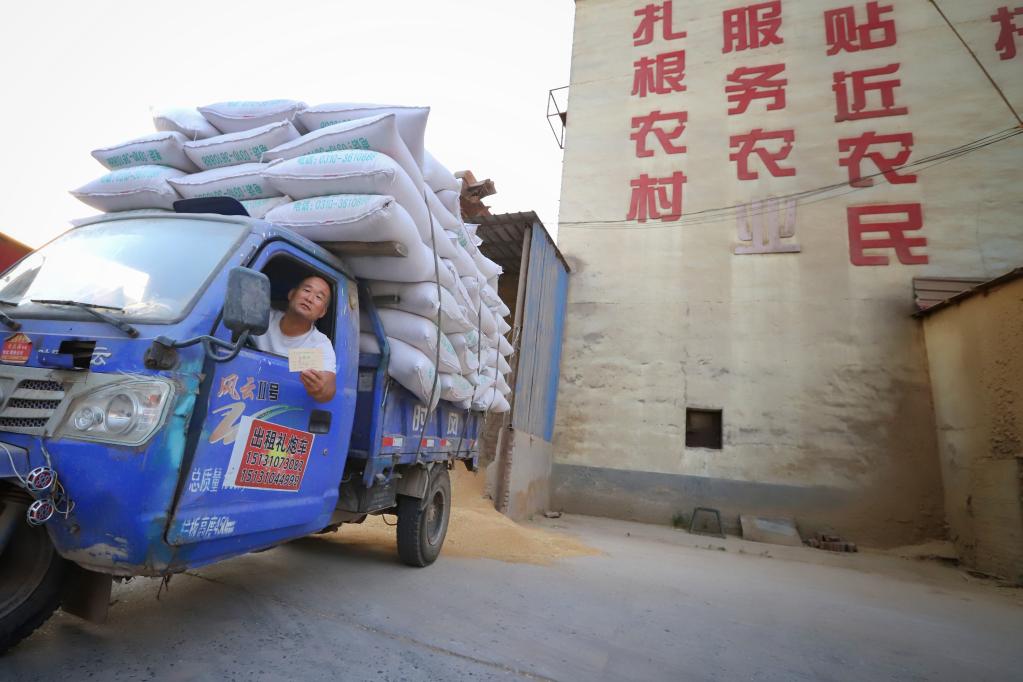魏縣種糧大戶(hù)張永軍手持“存糧證”準備儲存小麥。(受訪(fǎng)單位供圖)