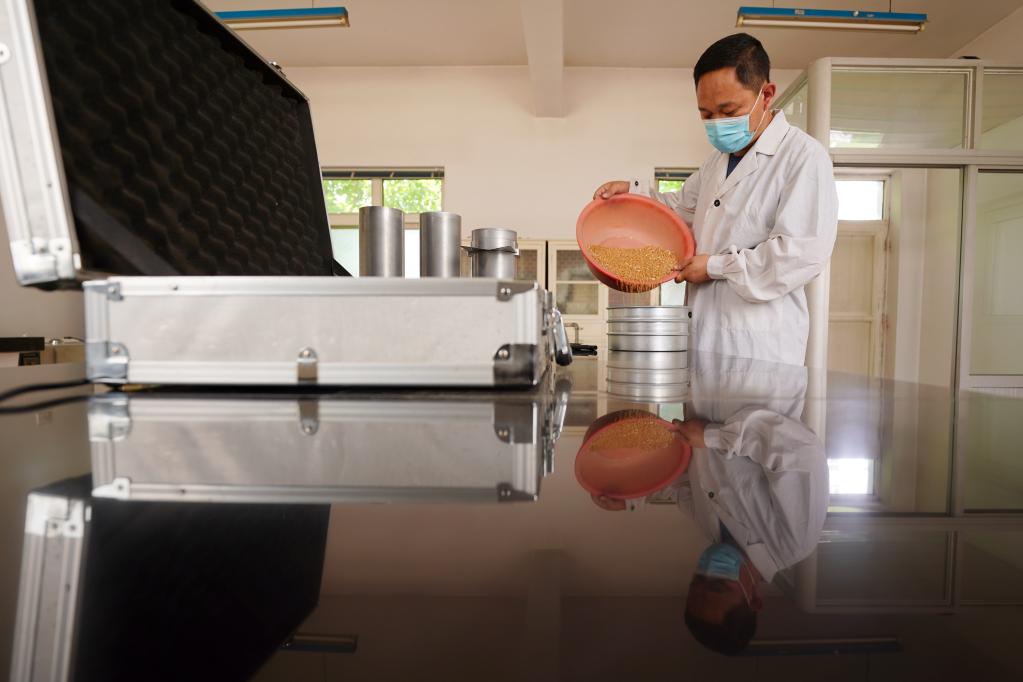 河北柏糧糧食儲備有限公司質(zhì)檢員在檢驗小麥質(zhì)量。(受訪(fǎng)單位供圖)