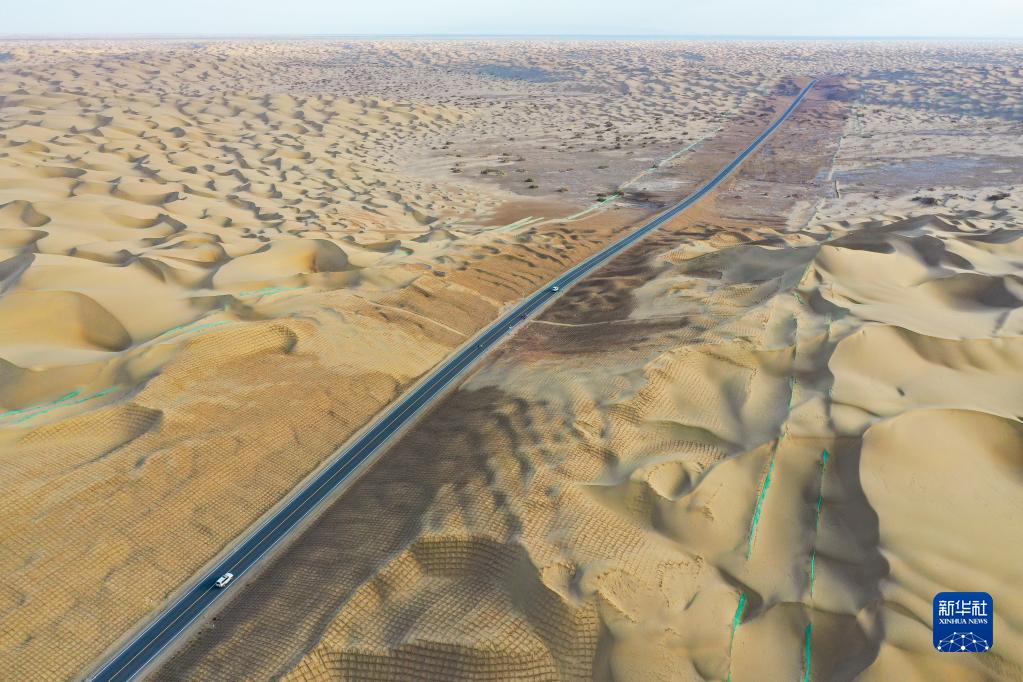 6月30日,新疆尉犁縣至且末縣沙漠公路正式通車(chē)。這條于2017年10月開(kāi)工建設的沙漠公路,全長(cháng)334公里,是繼塔里木沙漠公路、阿和公路后的第三條穿越塔克拉瑪干沙漠的公路。至此,我國在有著(zhù)“死亡之?!敝Q(chēng)的塔克拉瑪干沙漠修建了超1200公里的沙漠公路。