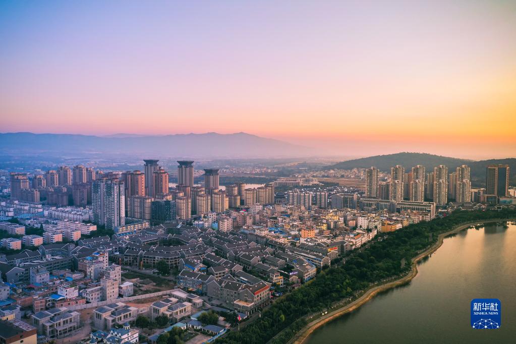 這是云南省彌勒市市區一景(無(wú)人機照片,2022年8月8日攝)?!⌒氯A社發(fā)(孔德云攝)