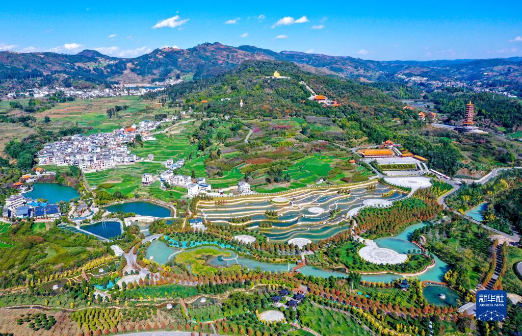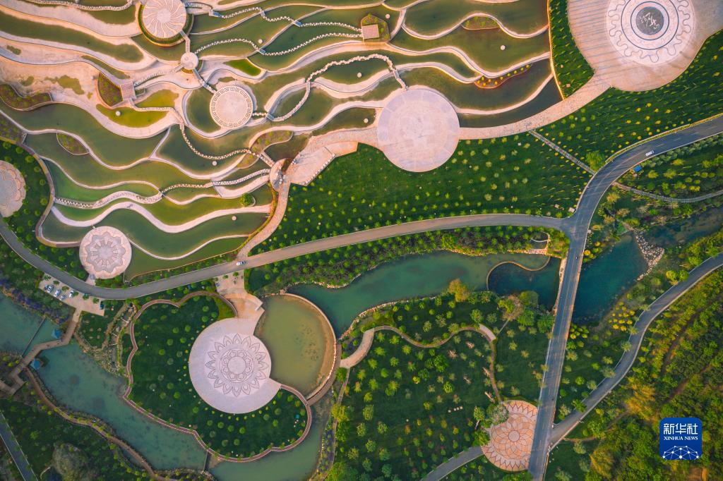 這是云南省彌勒市甸溪河濕地公園(無(wú)人機照片,2020年4月19日攝)?!⌒氯A社發(fā)(李昱廷攝)
