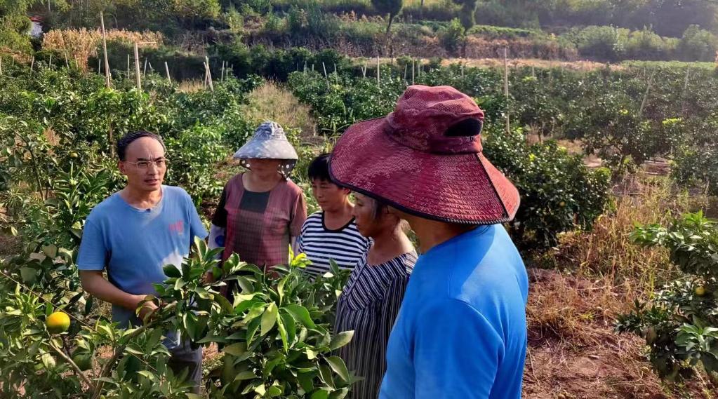 江一民在向村民講解果樹(shù)抗旱知識。(樂(lè )至縣委宣傳部供圖)
