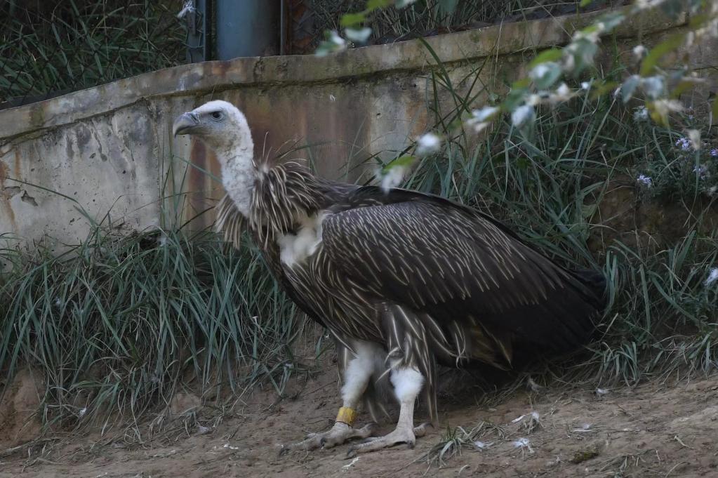 這是國內首只親鳥(niǎo)育雛長(cháng)大的人工繁育高山兀鷲“六毛球”。(西寧野生動(dòng)物園供圖)