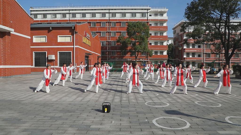 湖南省長(cháng)沙市望城區高塘嶺街道中南社區居民在活動(dòng)廣場(chǎng)上打太極拳。(受訪(fǎng)者供圖)