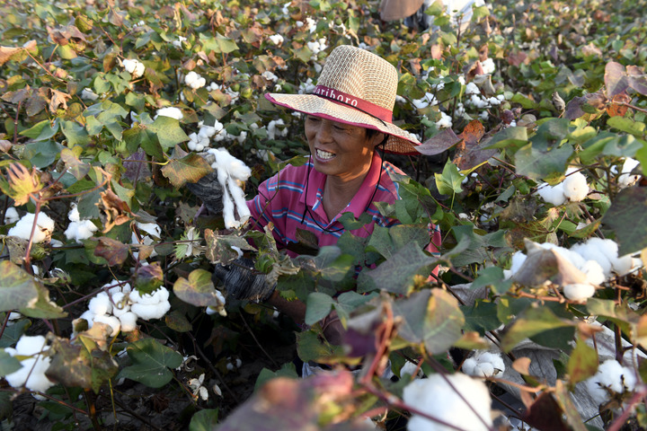 金秋時(shí)節,產(chǎn)棉大縣山東省濱州市無(wú)棣縣西小王鎮6萬(wàn)畝鹽堿地棉花進(jìn)入采收季。9月28日,山東省濱州市無(wú)棣縣西小王鎮棉農在采收新棉。新華社記者 范長(cháng)國 攝