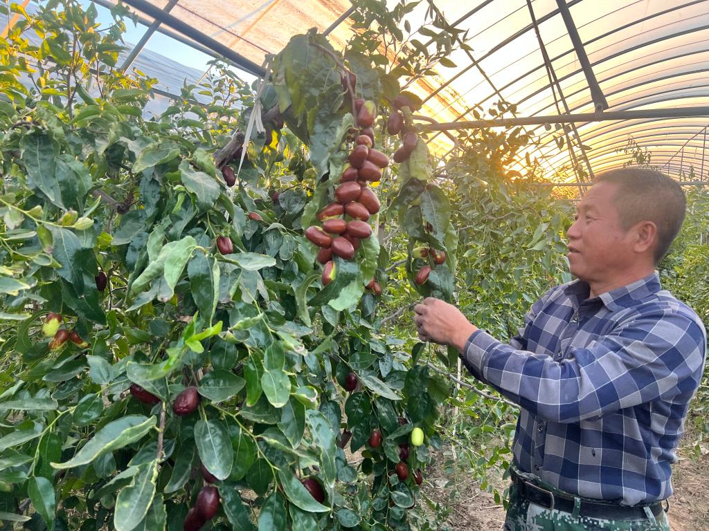 10月11日,張彥平正在查看紅棗的長(cháng)勢情況。新華社記者 柴婷 攝