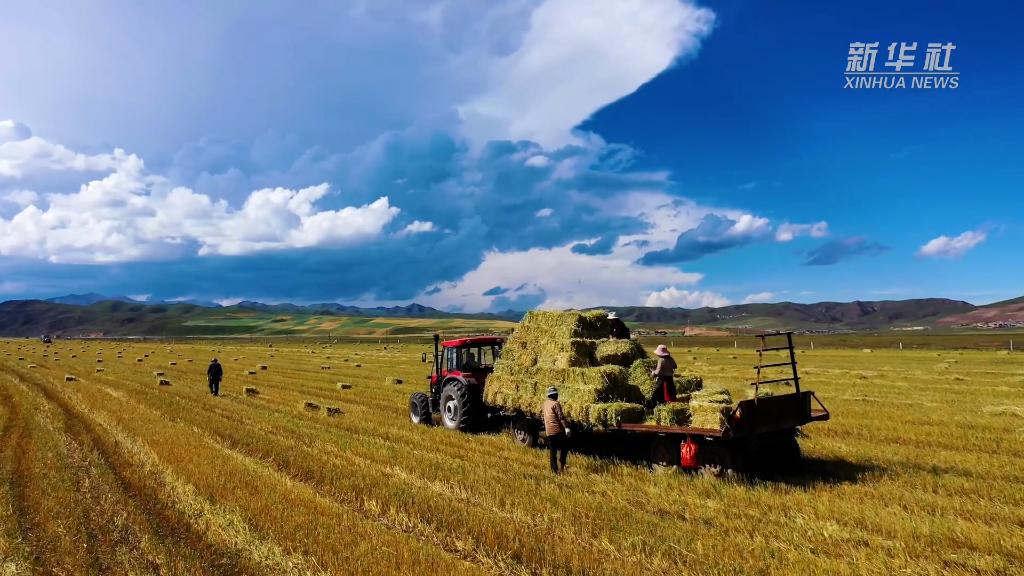金秋時(shí)節,甘肅省甘南藏族自治州青稞陸續迎豐收。連日來(lái),大型收割機穿梭在金黃的田野中,秋收已漸近尾聲。