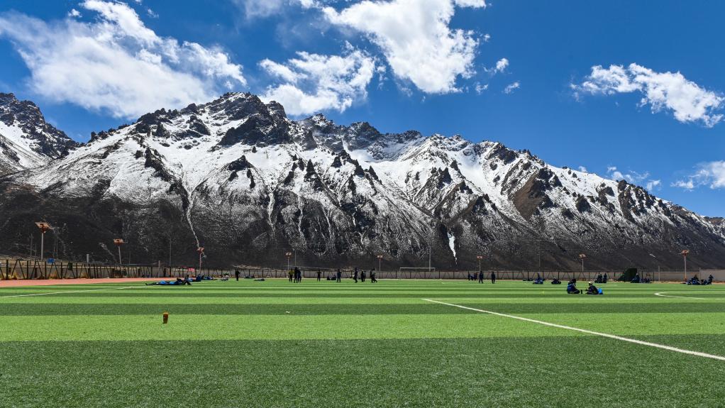 ↑這是那曲市嘉黎縣中學(xué)的足球場(chǎng)(3月30日攝)