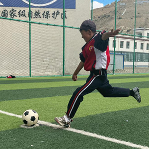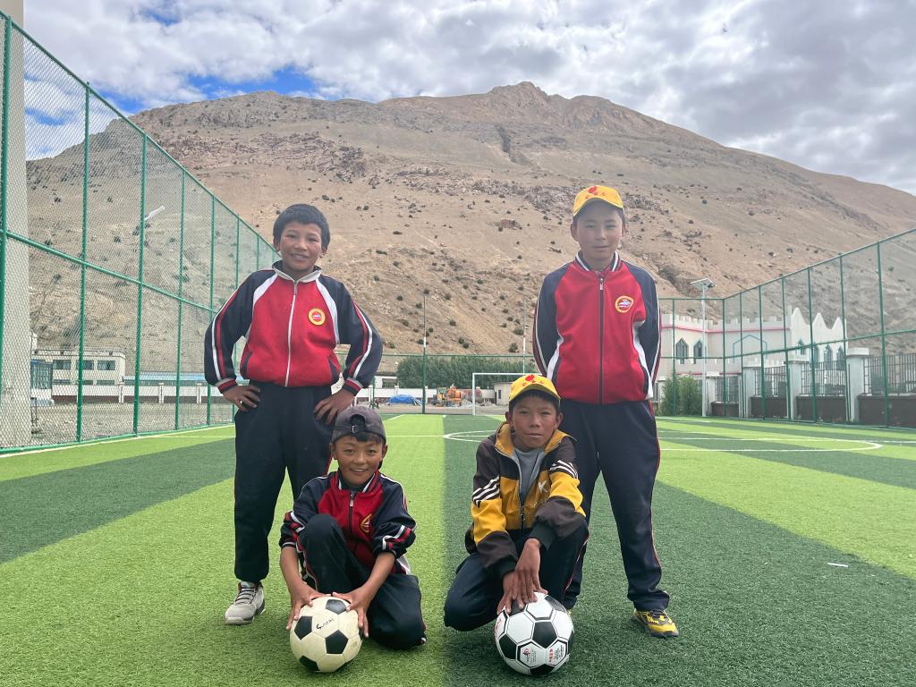 孩子們就在珠峰的陪伴下踢球