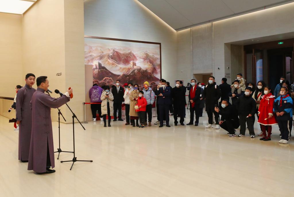 1月22日,參觀(guān)者在中共一大紀念館觀(guān)看曲藝黨課。新華社記者 方喆 攝